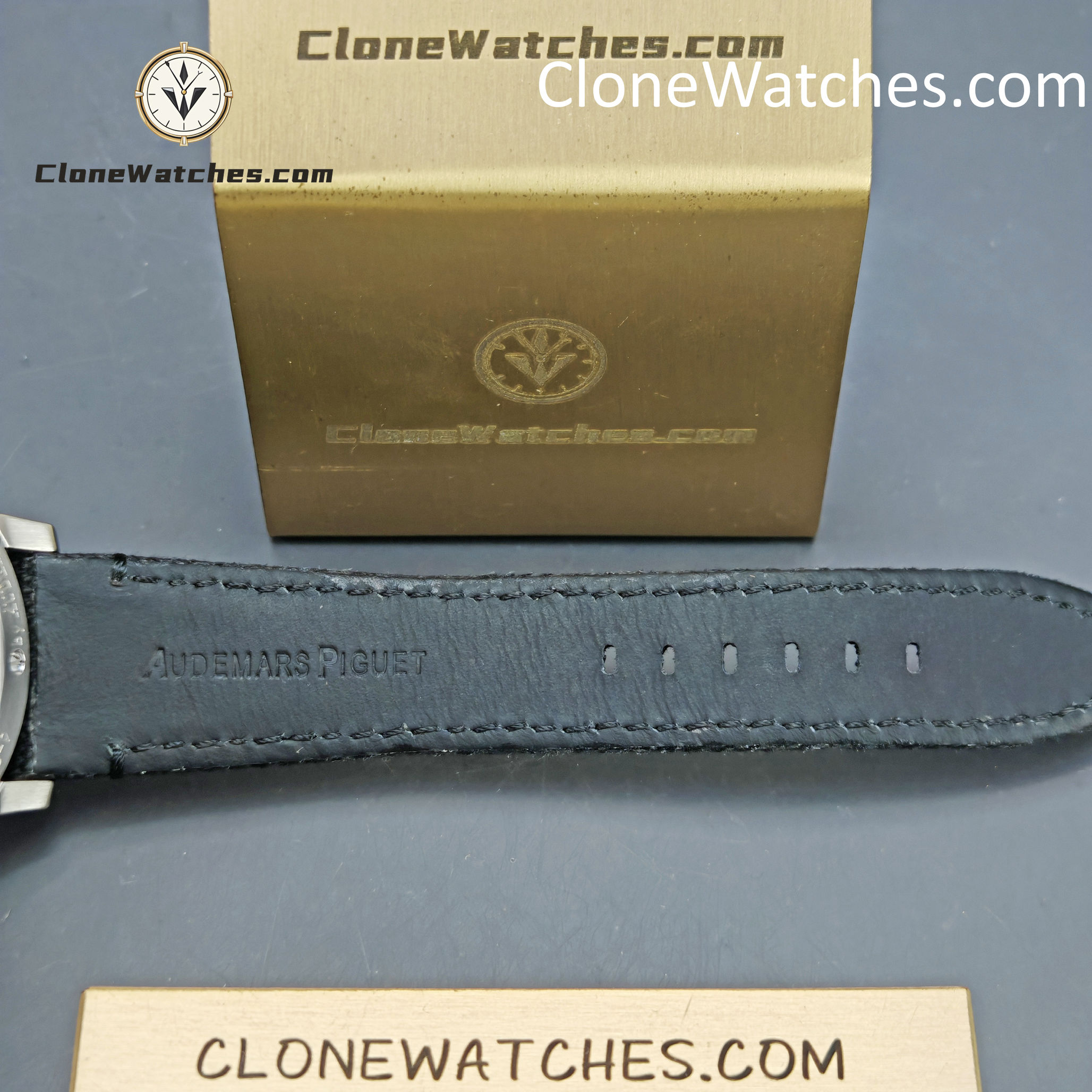 Powered by a 1:1 Super Clone automatic movement, this timepiece delivers smooth sweeping seconds and reliable chronograph performance that rivals the authentic AP Caliber. It is paired with a premium black fabric strap and stainless steel buckle for both comfort and a sporty-luxury aesthetic.