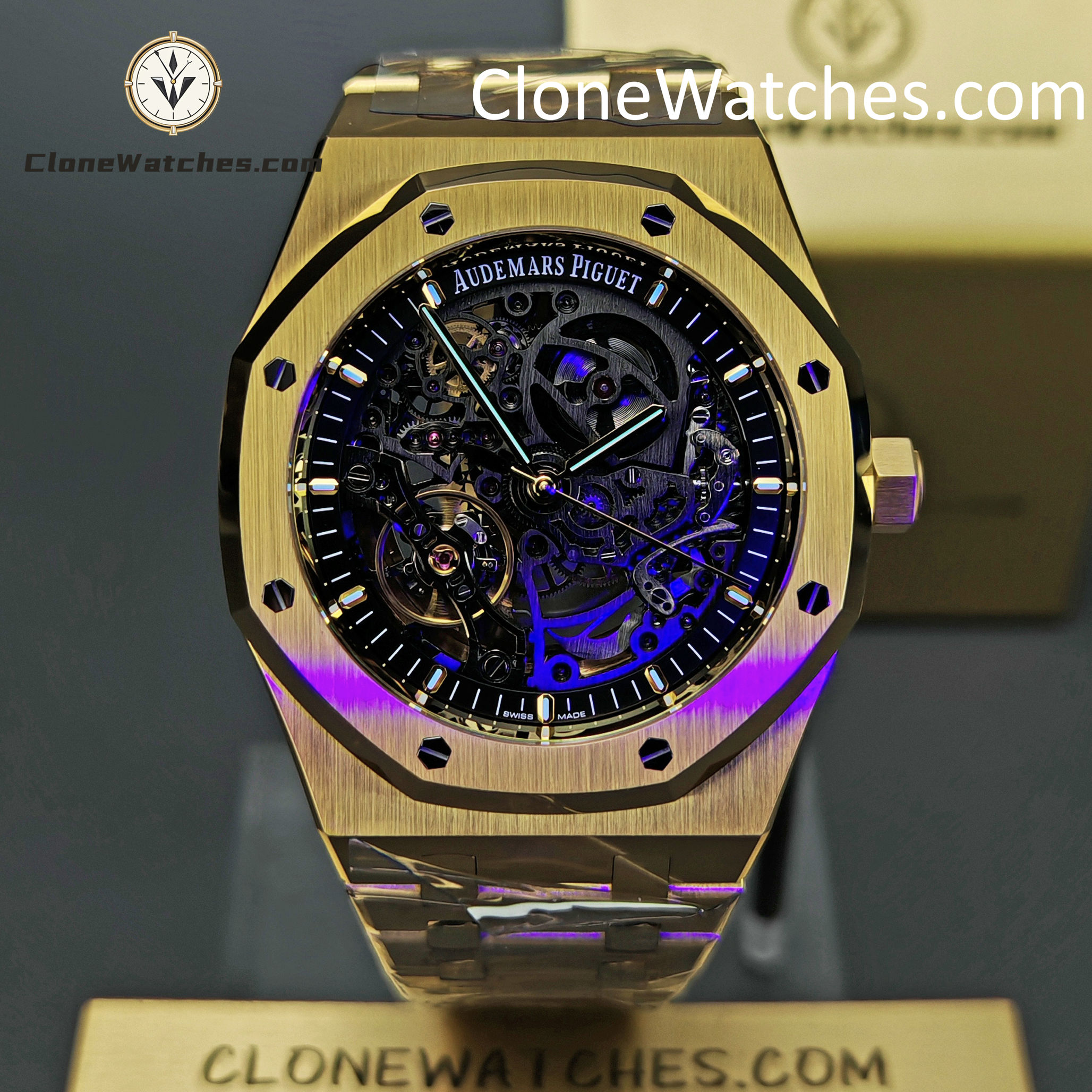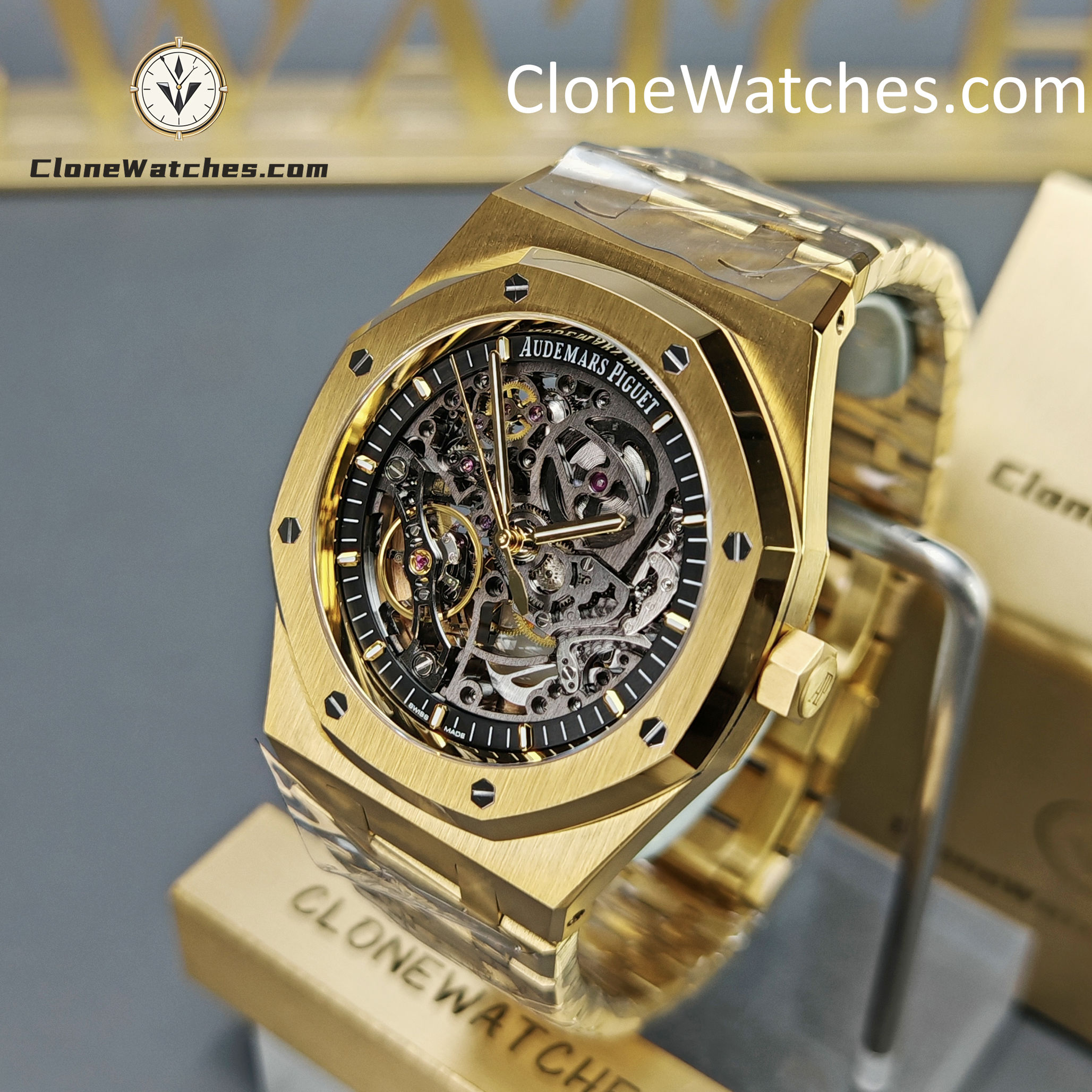1:1 Perfect Replication – Every element, from the skeletonized movement to the gold finish, mirrors the genuine Audemars Piguet 15407.