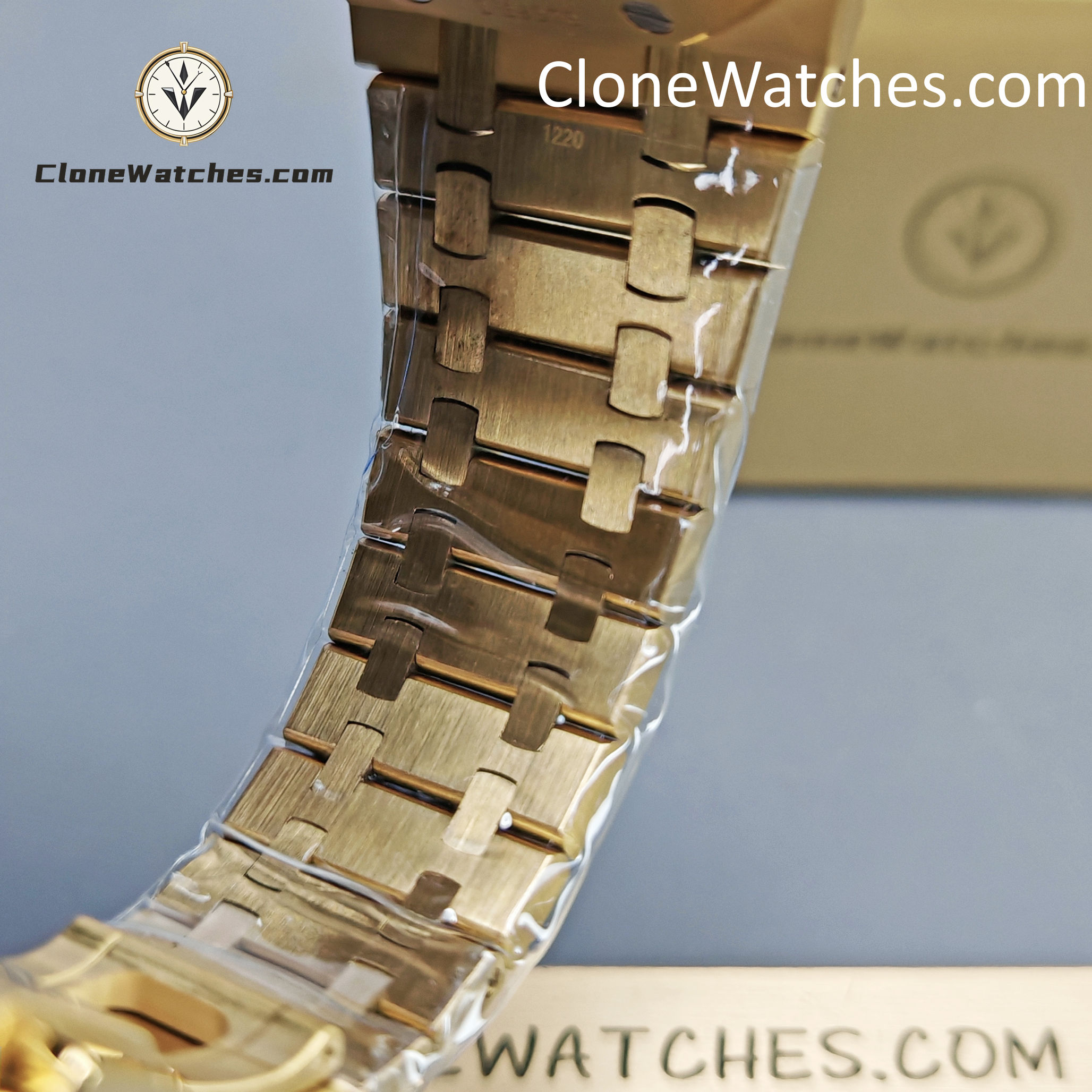 41mm 18K Gold Case – Iconic octagonal bezel with exposed screws, crafted with premium gold plating for authentic weight and luster.