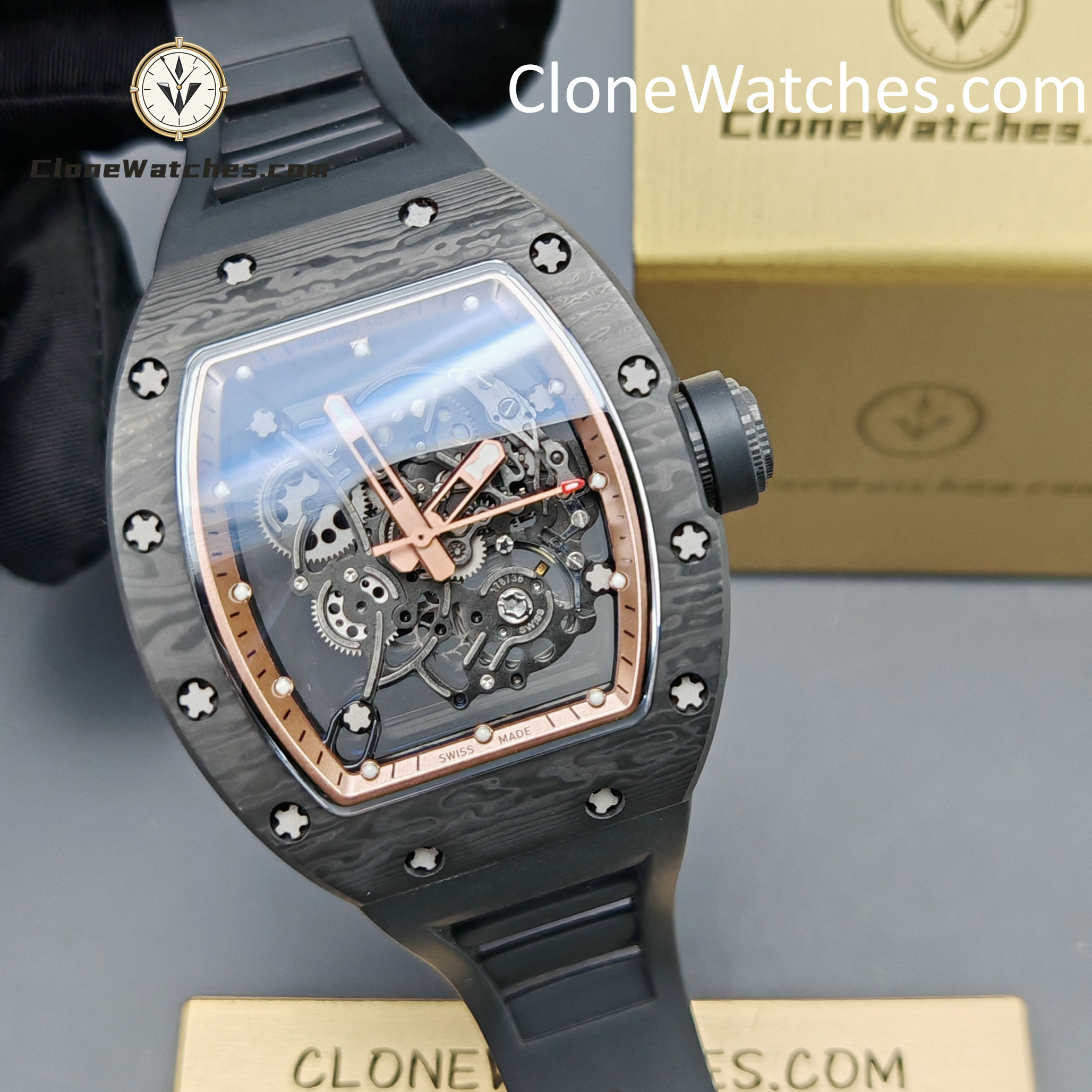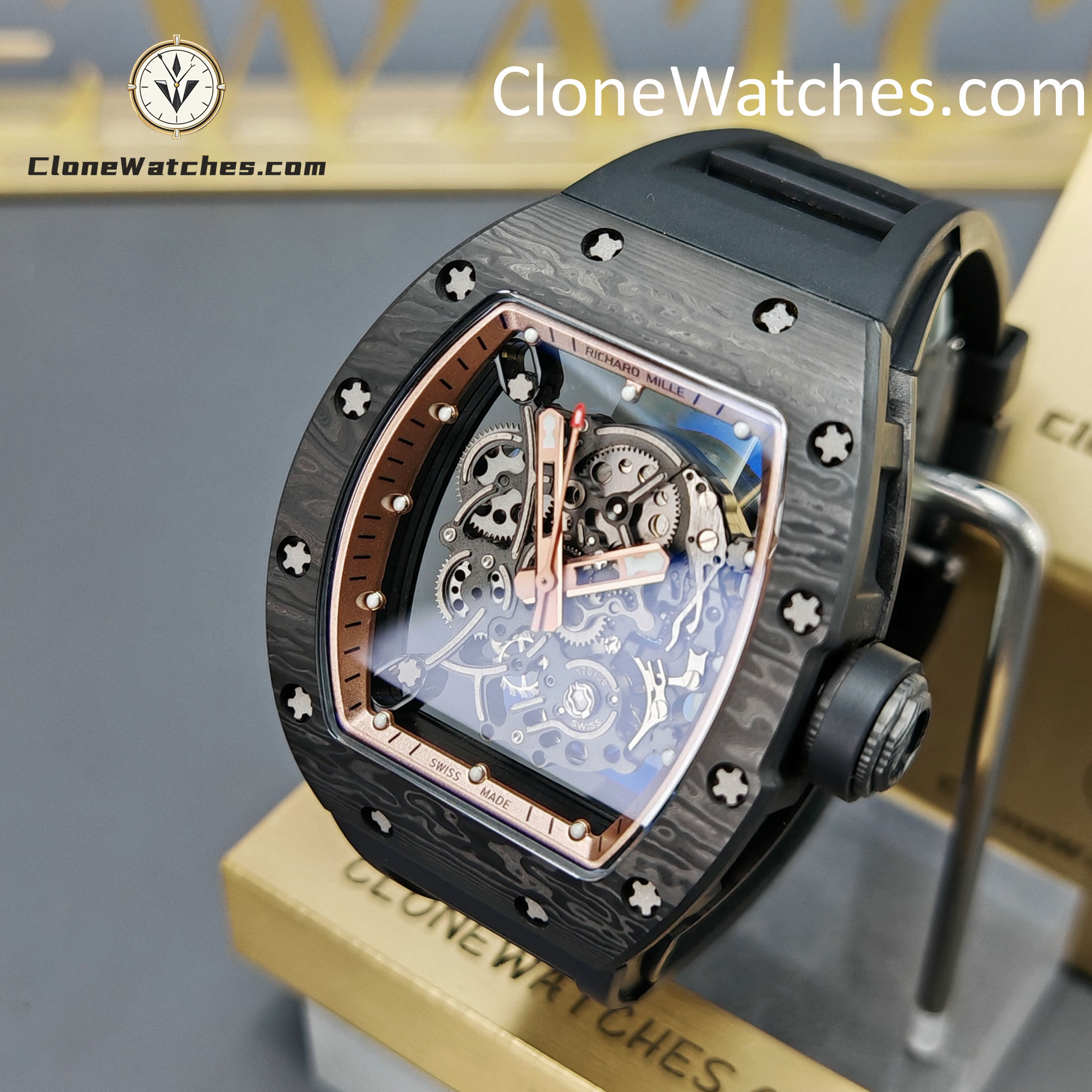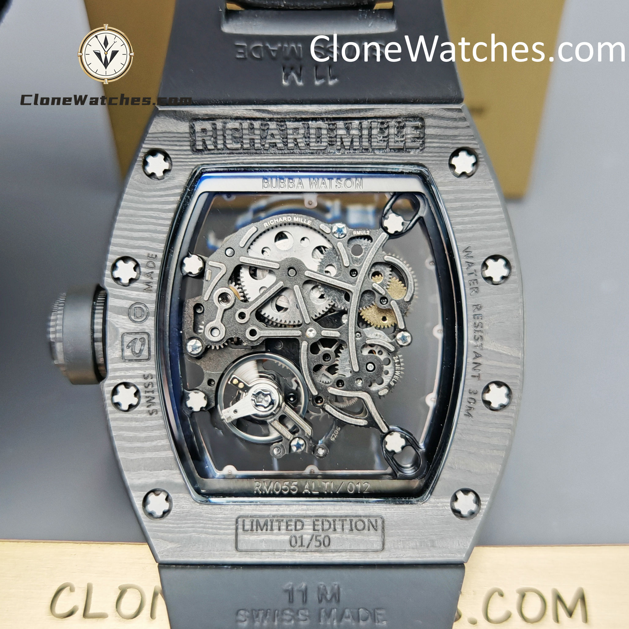 Richard Mille Super Clone Watches 1:1 RM 055 Carbon Tourbillon Black Strap