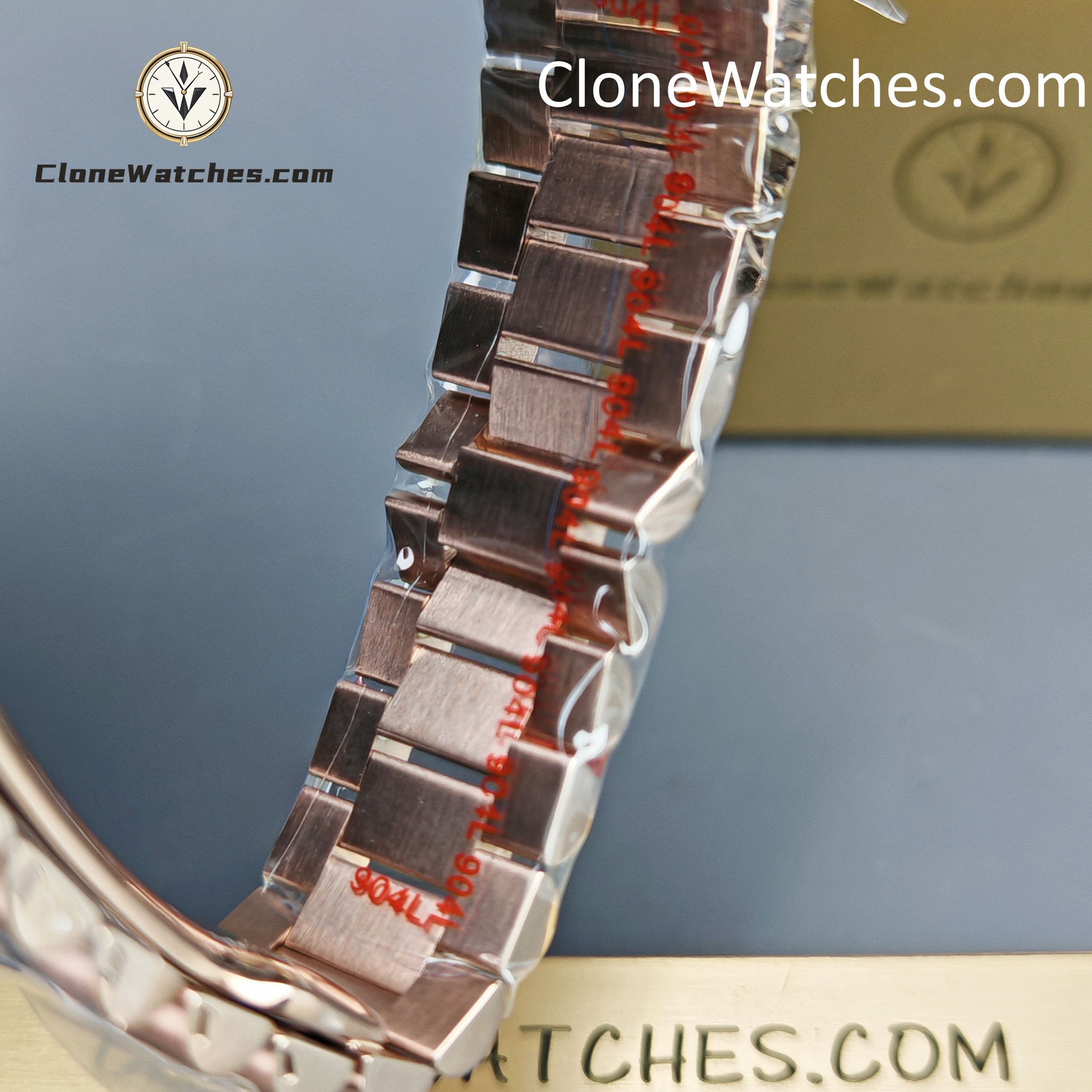 Bracelet: Classic President three-link bracelet, crafted from 904L stainless steel with rose gold finishing, smooth and durable.