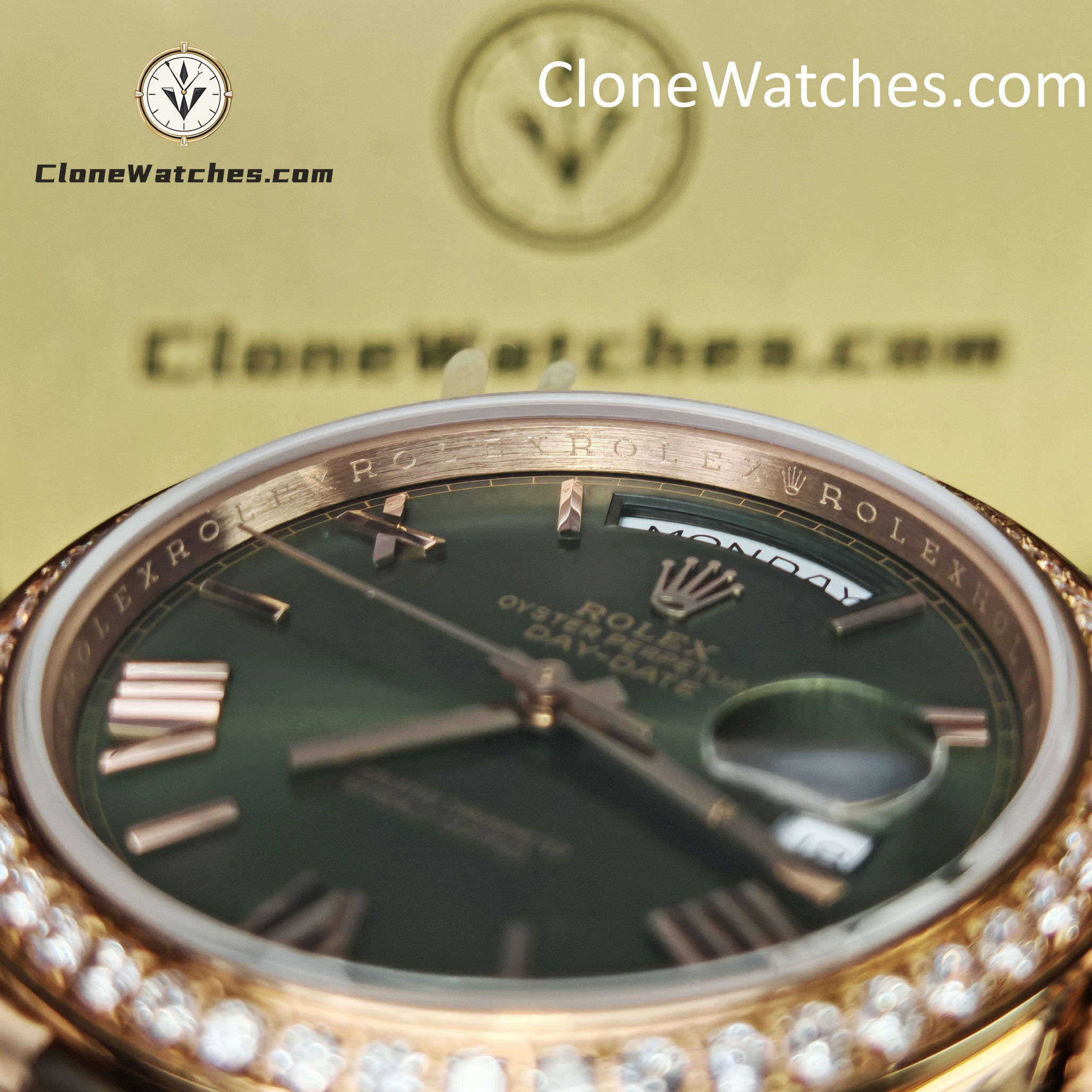 For those who pursue ultimate detail and luxury, the Day-Date Rose Gold Green Roman Dial m228345rbr-0011 stands as one of the finest choices in the world of Super Clone Watches.